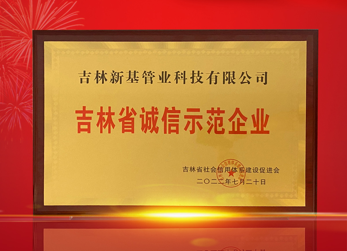 喜報丨新基管業再次榮獲"吉林省誠信示范企業"榮譽稱號